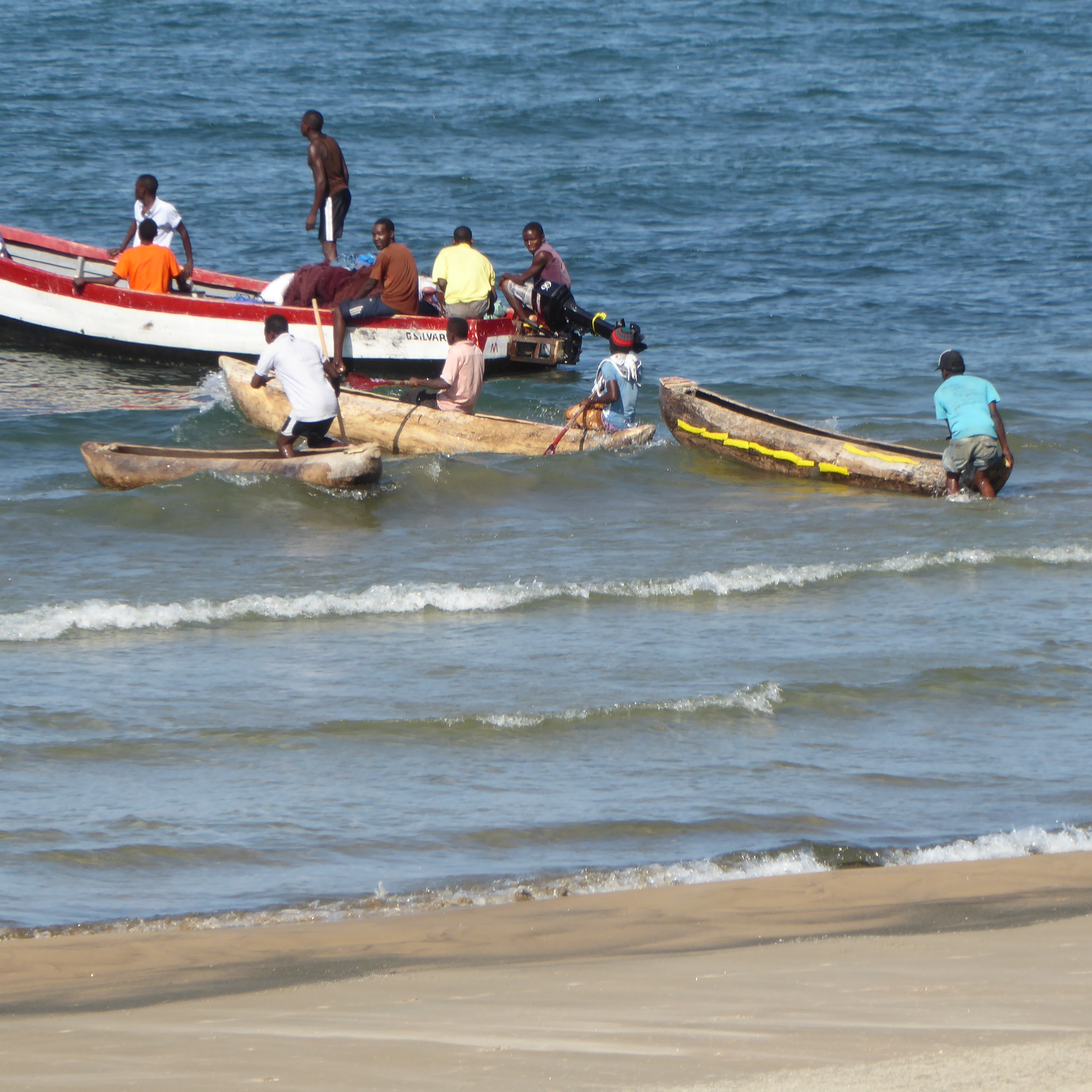Many people on beach of Lake Malawi