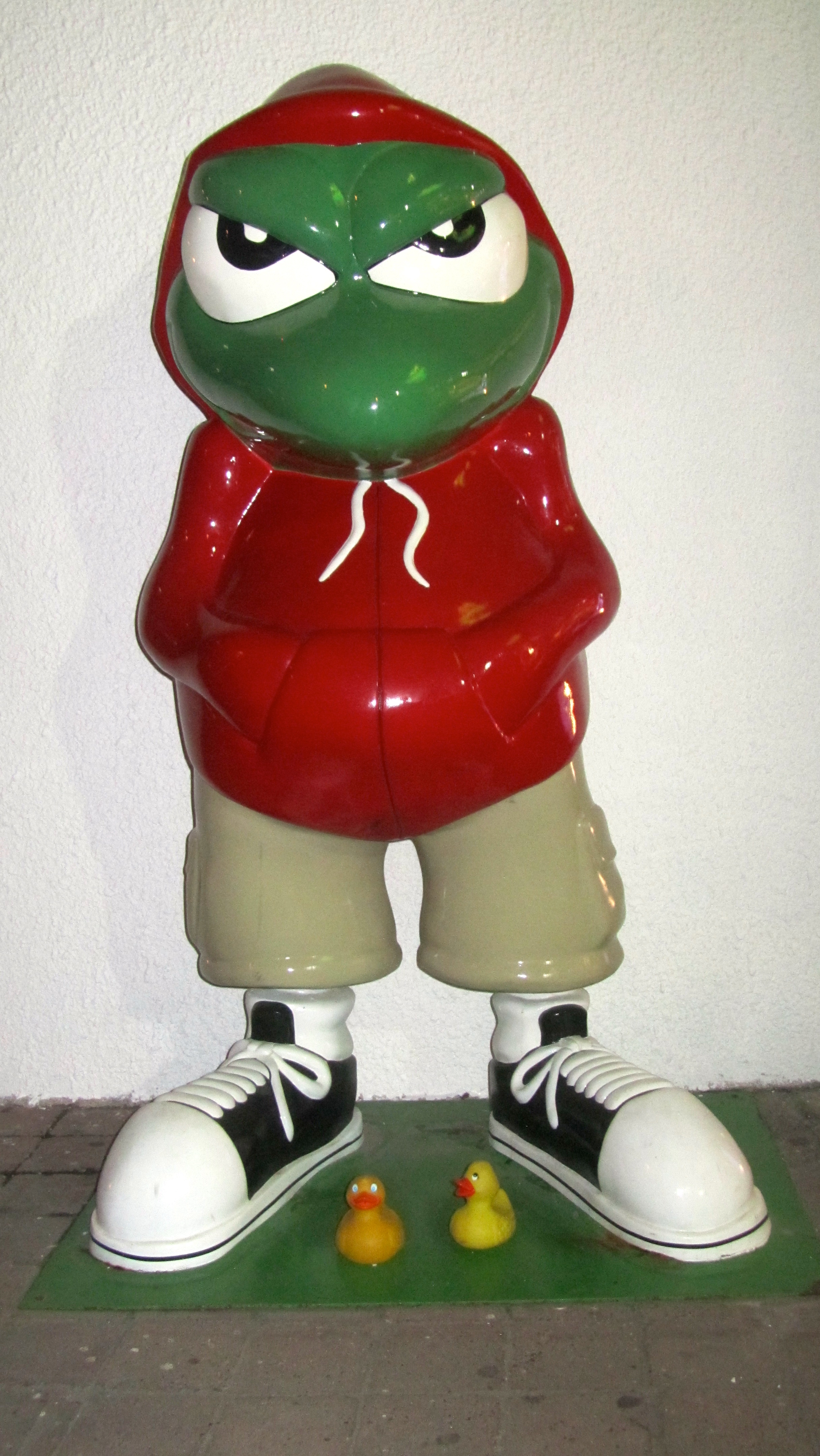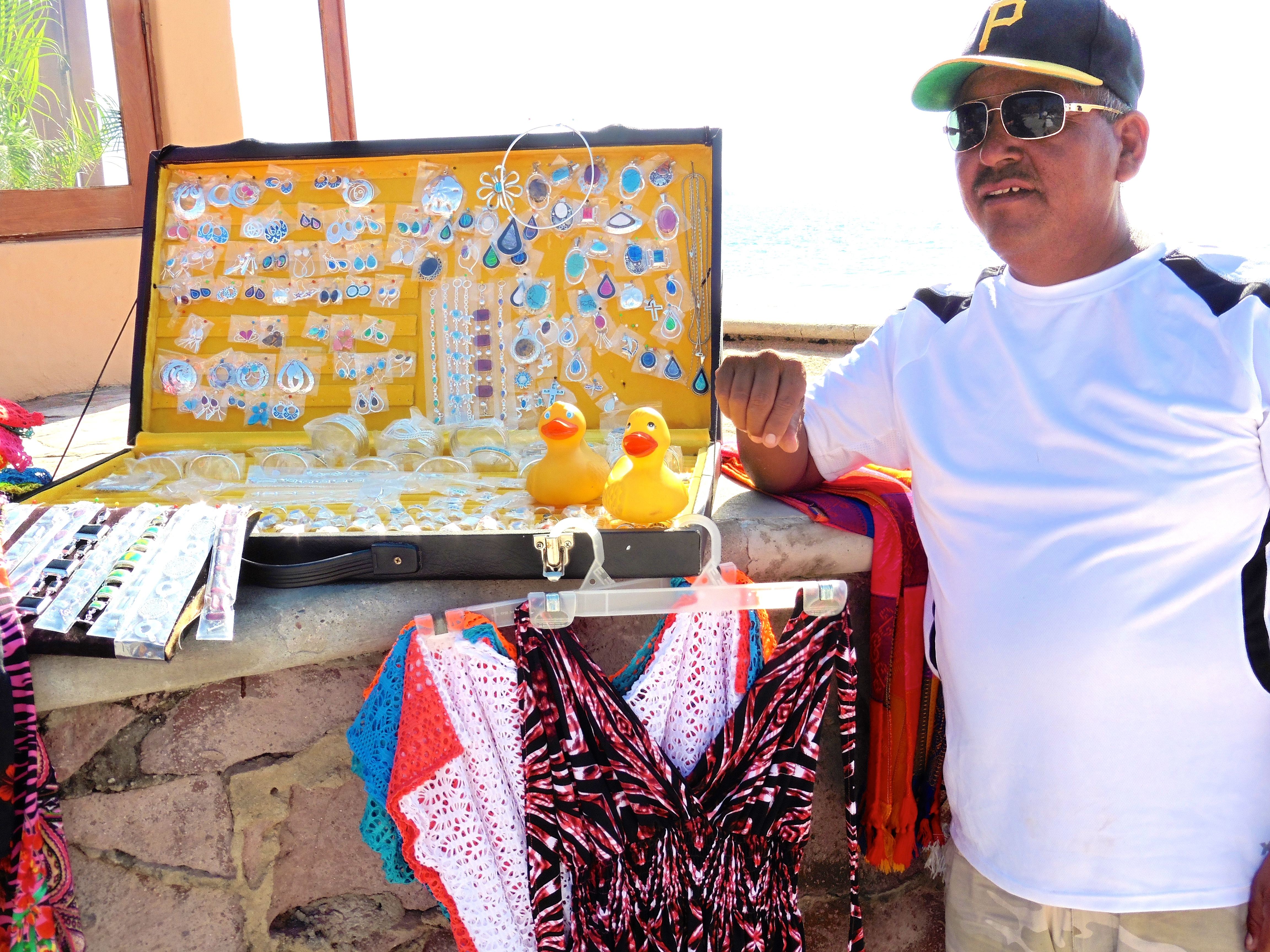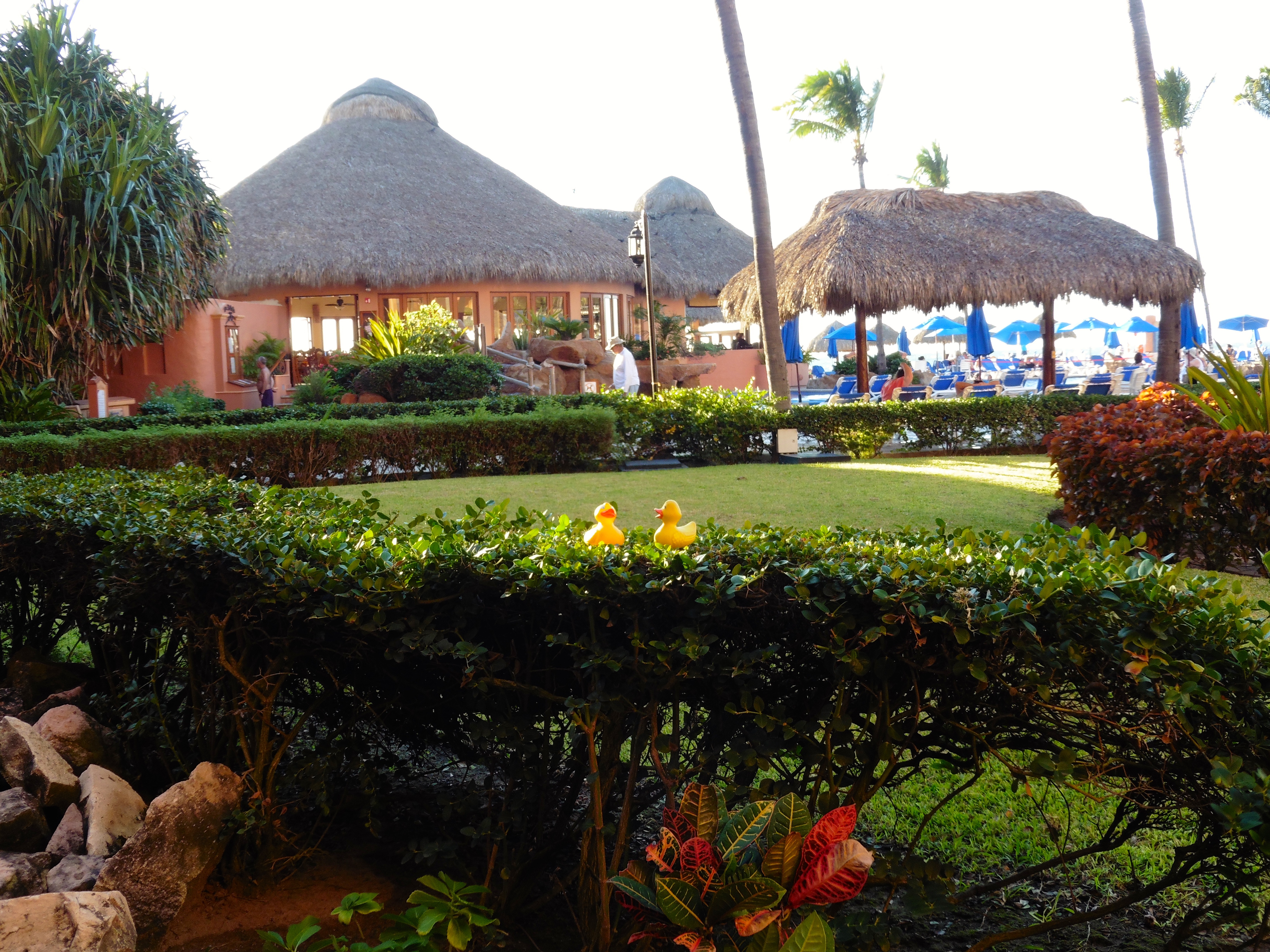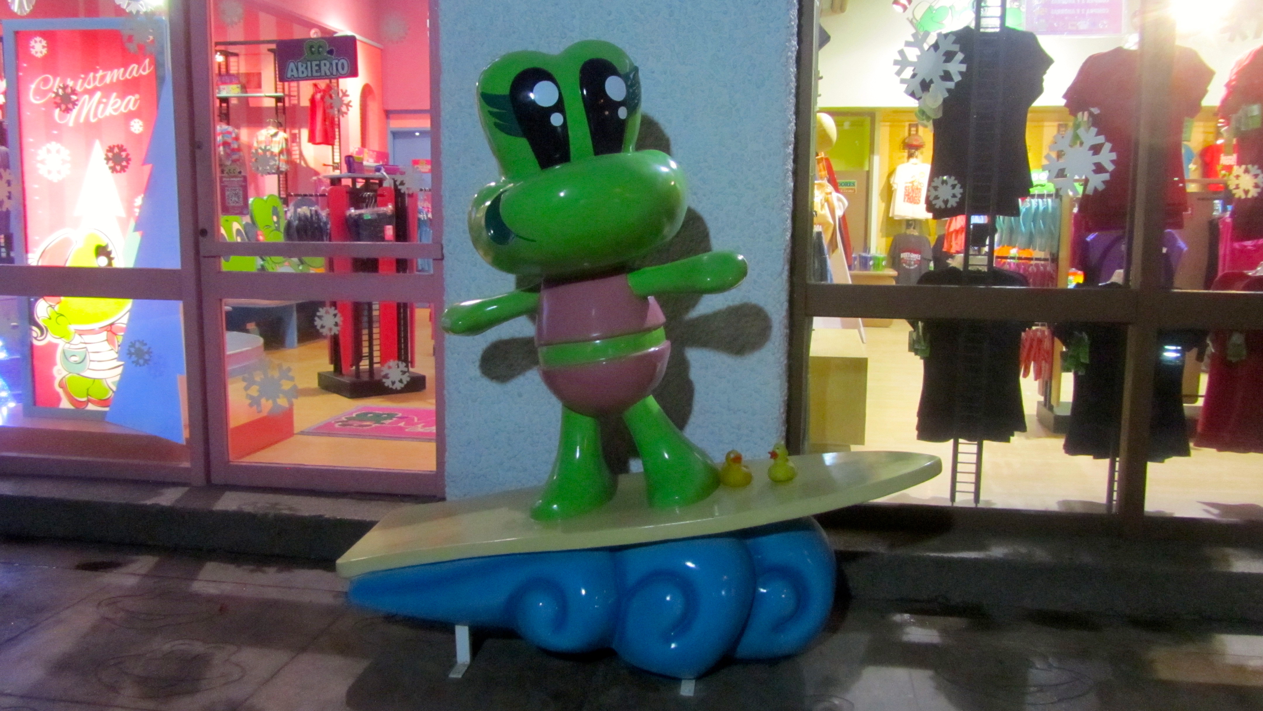 It is not often we see a statue of a rhinoceros on a patio. We could not go inside the building with Chloe, so we are not sure what that was about. US dollars can be exchanged for Mexican pesos.