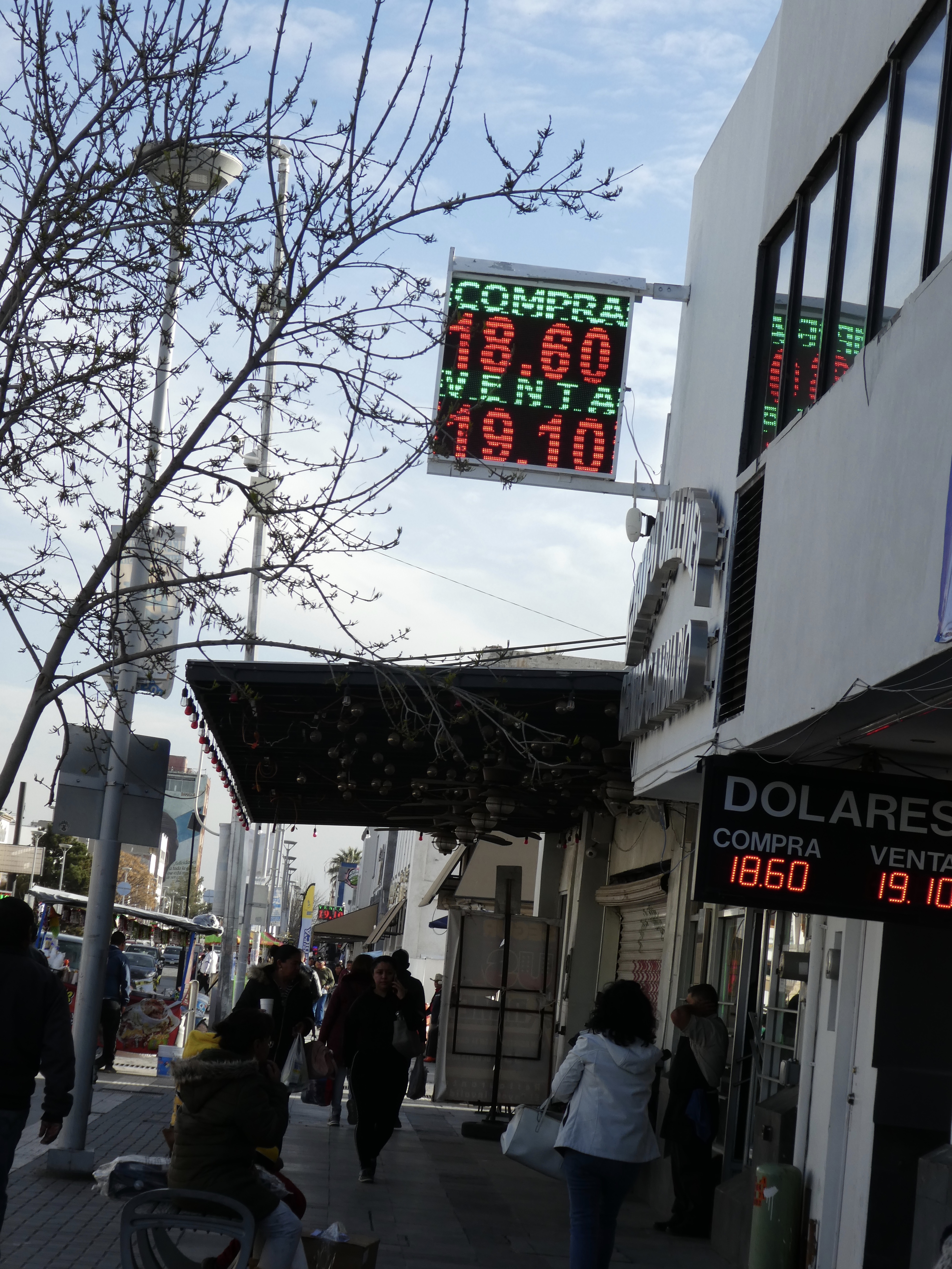 One US dollars gets 18.60 Mexican pesos. But only exchange what you will spend. If you want to sell pesos to repurchase your US dollars, you must pay 19.10 pesos for a dollar. We were only here for a short time, so we did not exchange any money. We did not find any restaurants with outdoor patios that were open, so we purchased street tacos from a vender. We paid in US dollars, so the price was a little higher, but we were fine with that.