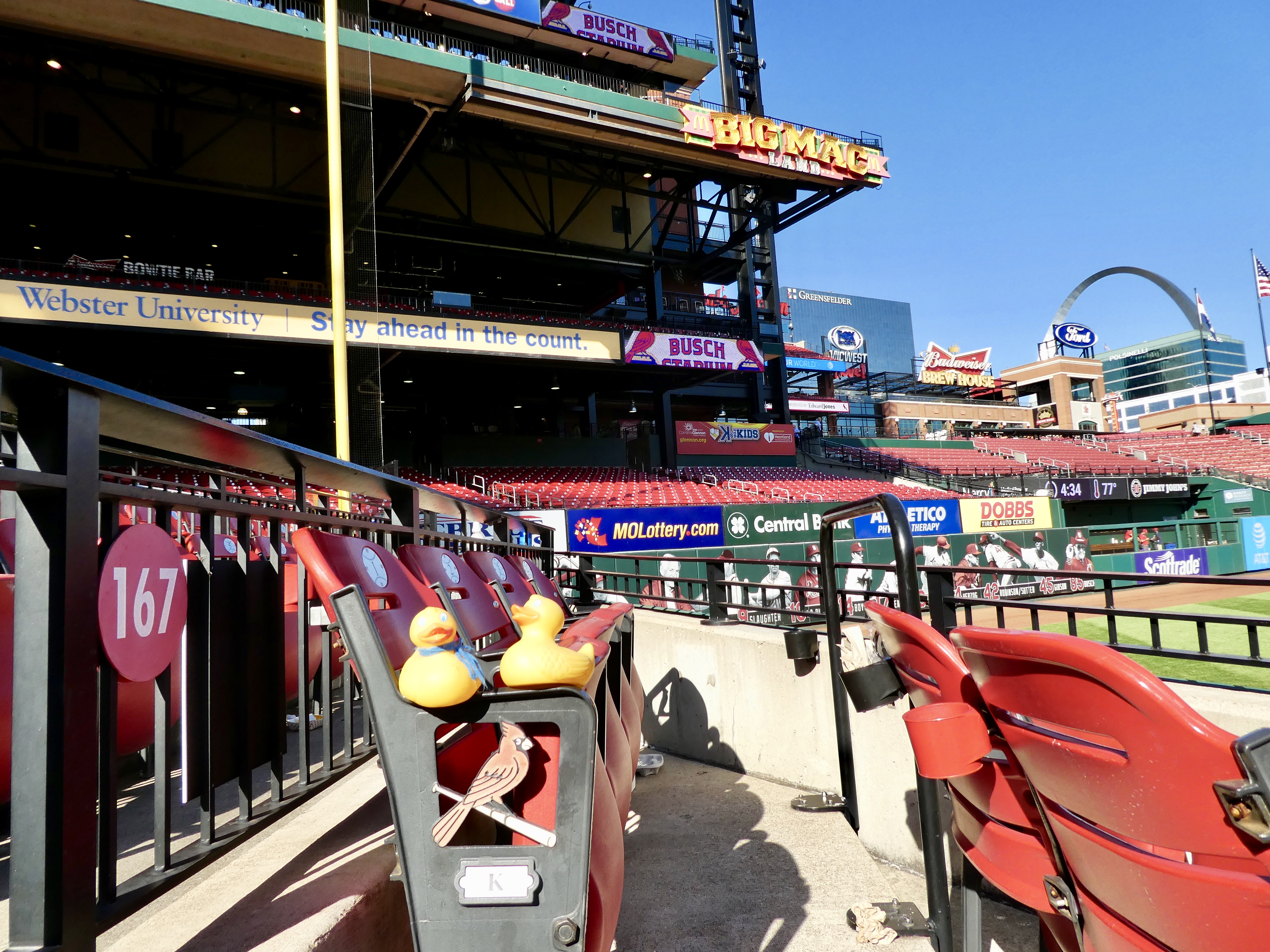 I, Zeb the Duck, and Soapy Smith Duck had part of a day in St. Louis. What should we do? We drove downtown and parked across from Busch Stadium.