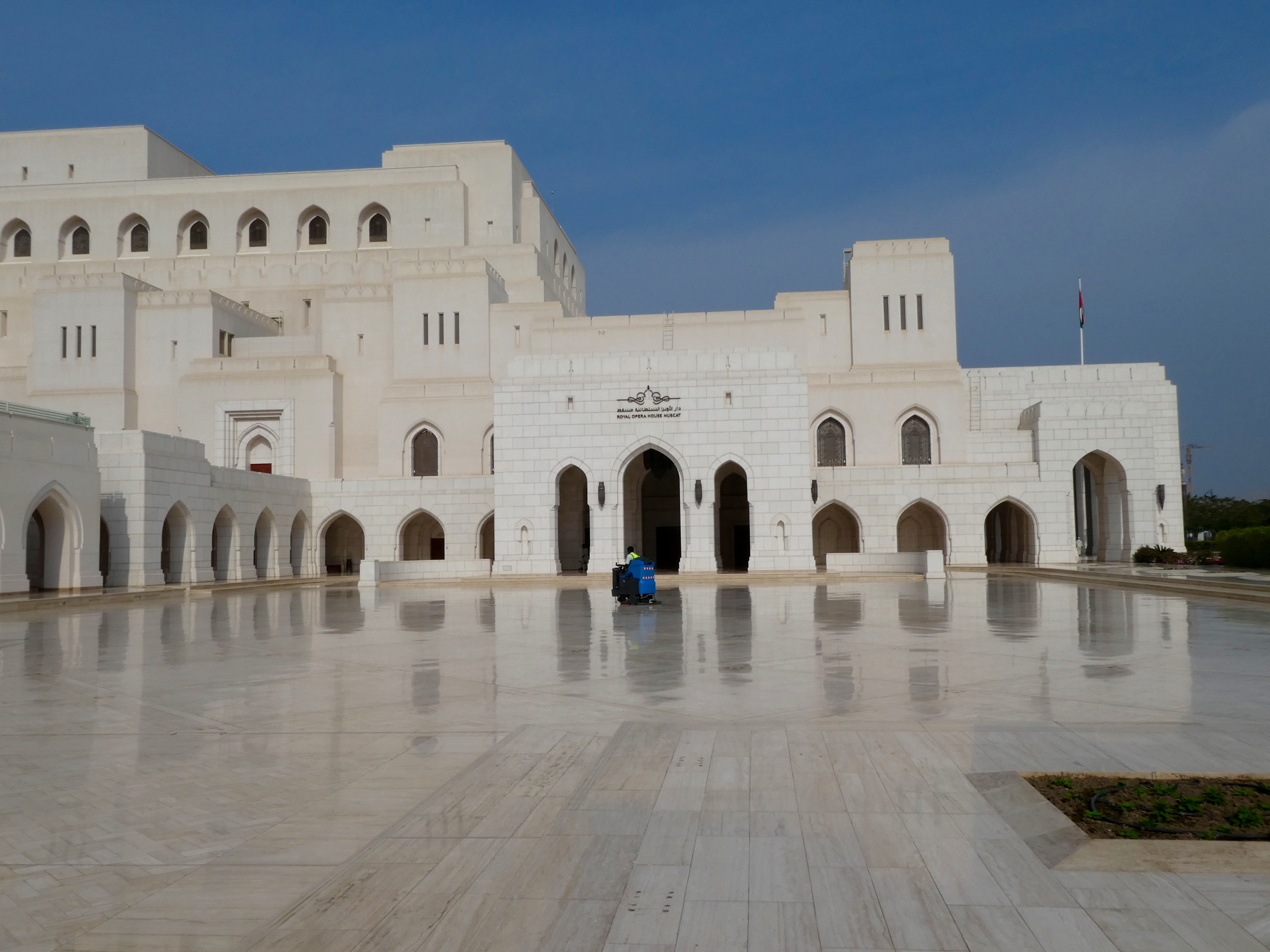 World class opera performances in the desert?   Yes!   The Royal Opera House of Muscat opened October, 2011 and has been featuring some of the best entertainers from around the world ever since.   This Omani venue comfortably seats 1,100 patrons.   Now the outside floor is being polished.