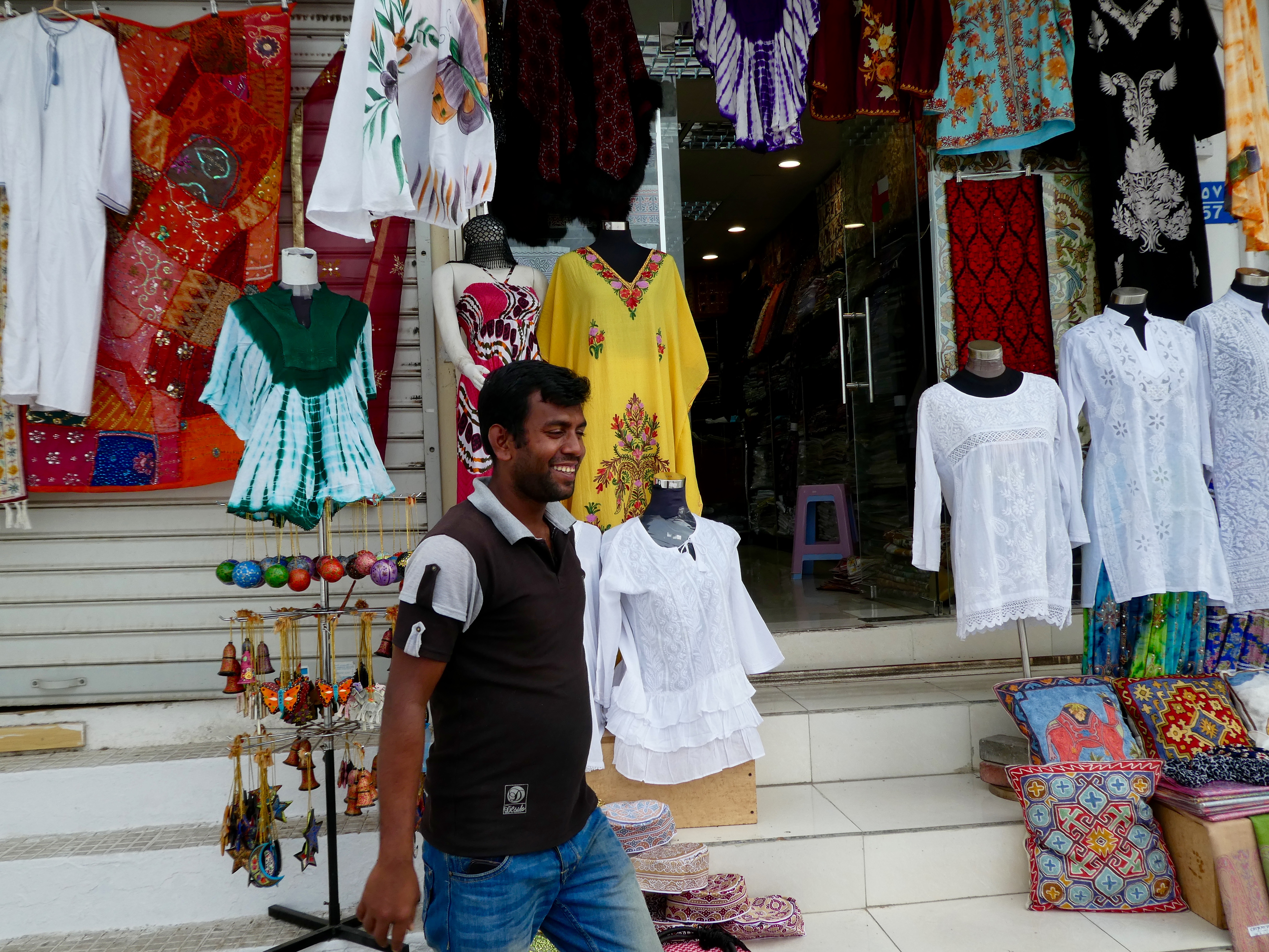 We love to see traditional things mixed with the modern.   Now we know we really are on vacation in a new destination.   Here in Muscat, Oman we are shopping.   One of the best things about the souk is talking with the people here.   The items in this store caught the attention of our moms.