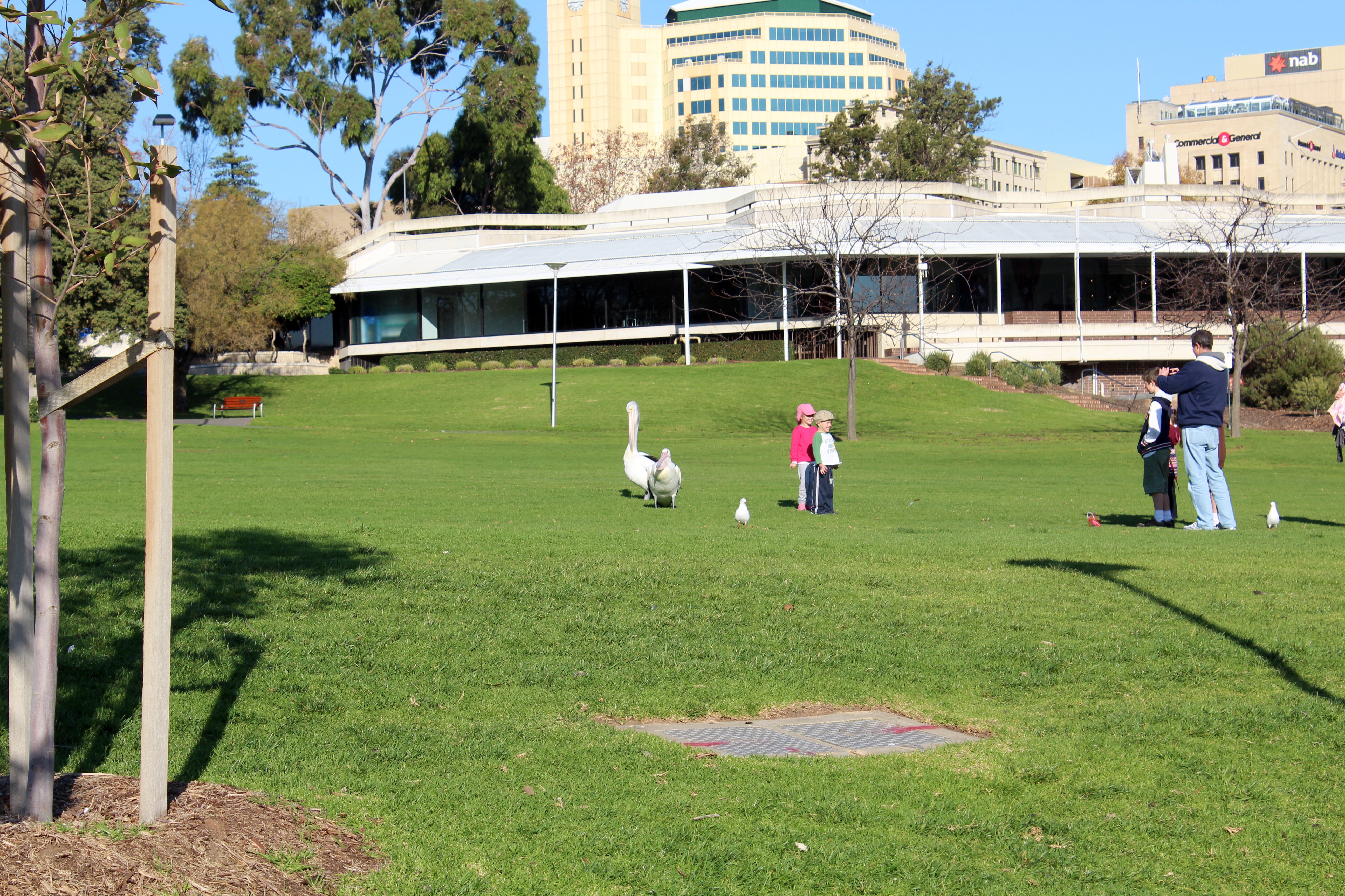 Here we have black and white pelicans. The moms just loved the koalas, so we paid to go in a special area so they could pet and touch this koala.