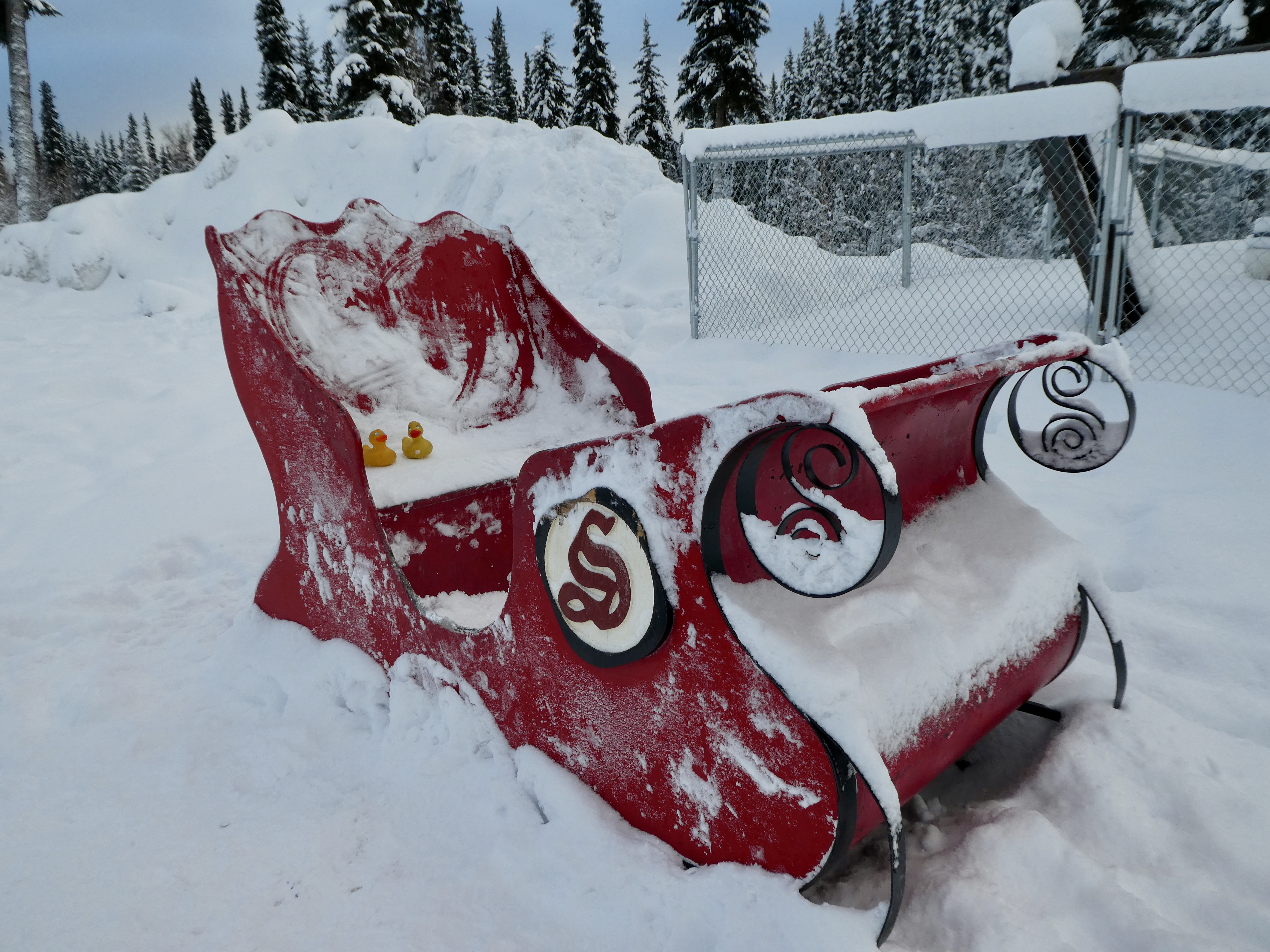 Some of these benches are very ornate. We love the carved wooden benches. In the winter, this is a great area to view the Aurora, or the Northern Lights. Also fun to ride on a dog sled through the snow and wooded areas. Chena Hot Springs is a great year round resort.