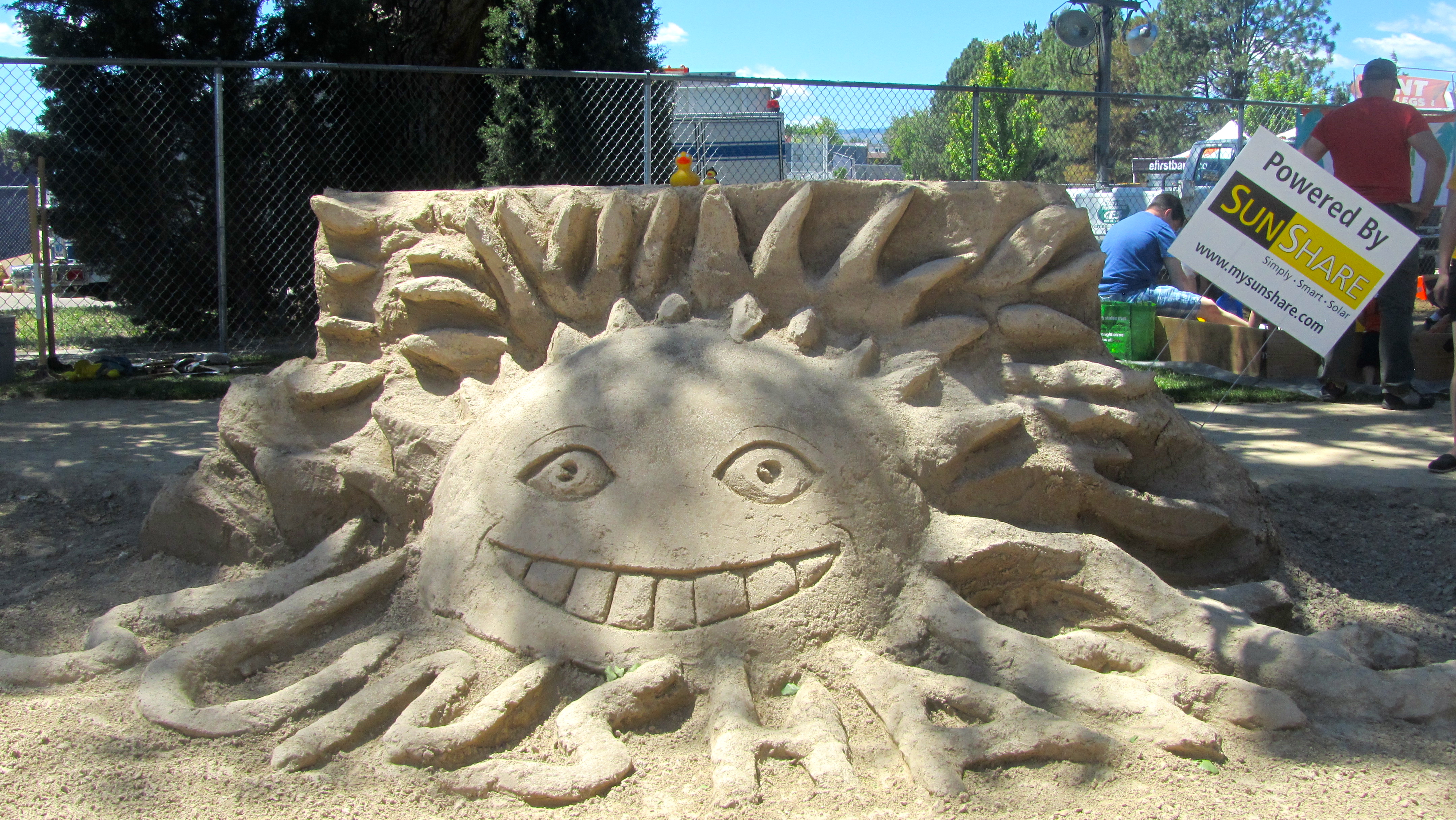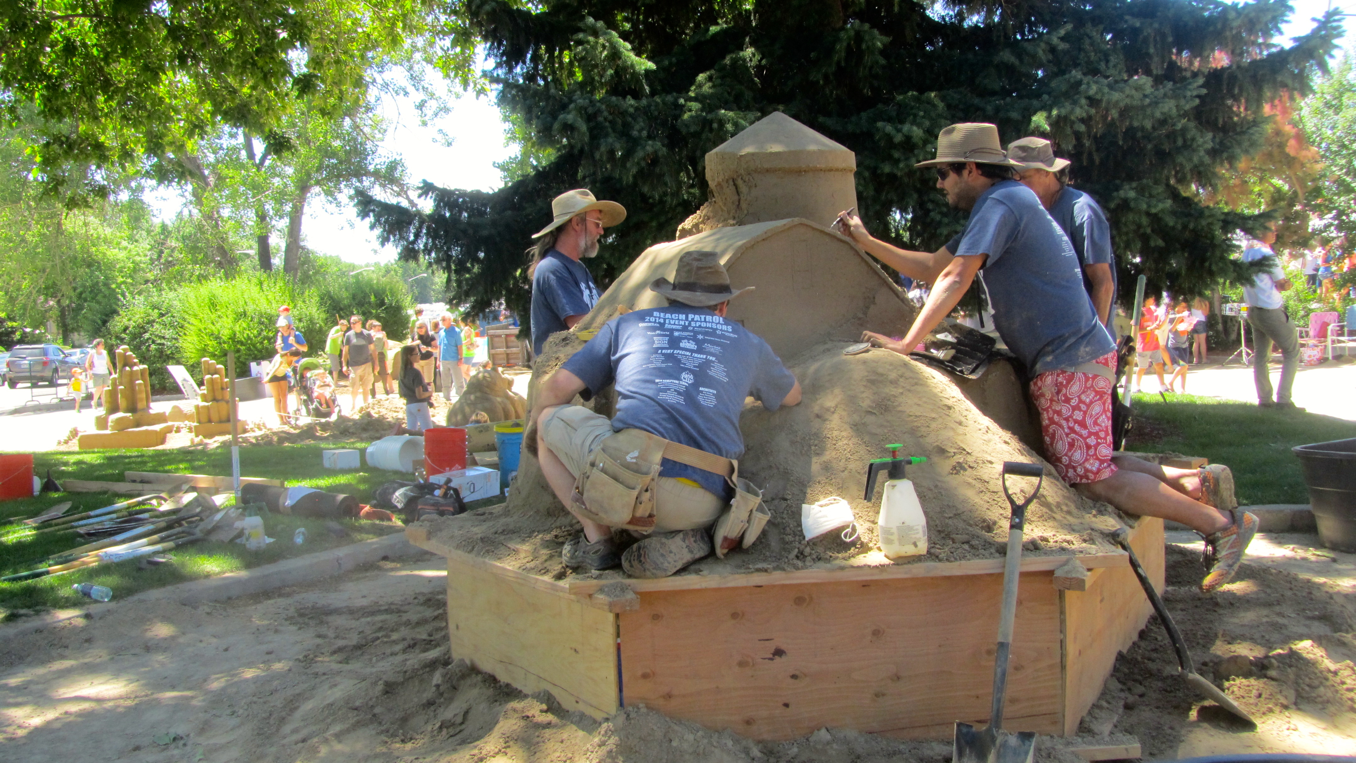 We decided it might be time to leave. Not raining yet, but we walked to our car and within 3 minutes in was raining hard. We don’t know if the sand sculptures were covered or if they were damaged. The festival had a few more hours before scheduled closing, but we think the sculptures were damaged. A few hours later, the rain stopped, the sun was shining and our bright blue Colorado sky was clear. We hope you are enjoying festivals this summer. They are fun.