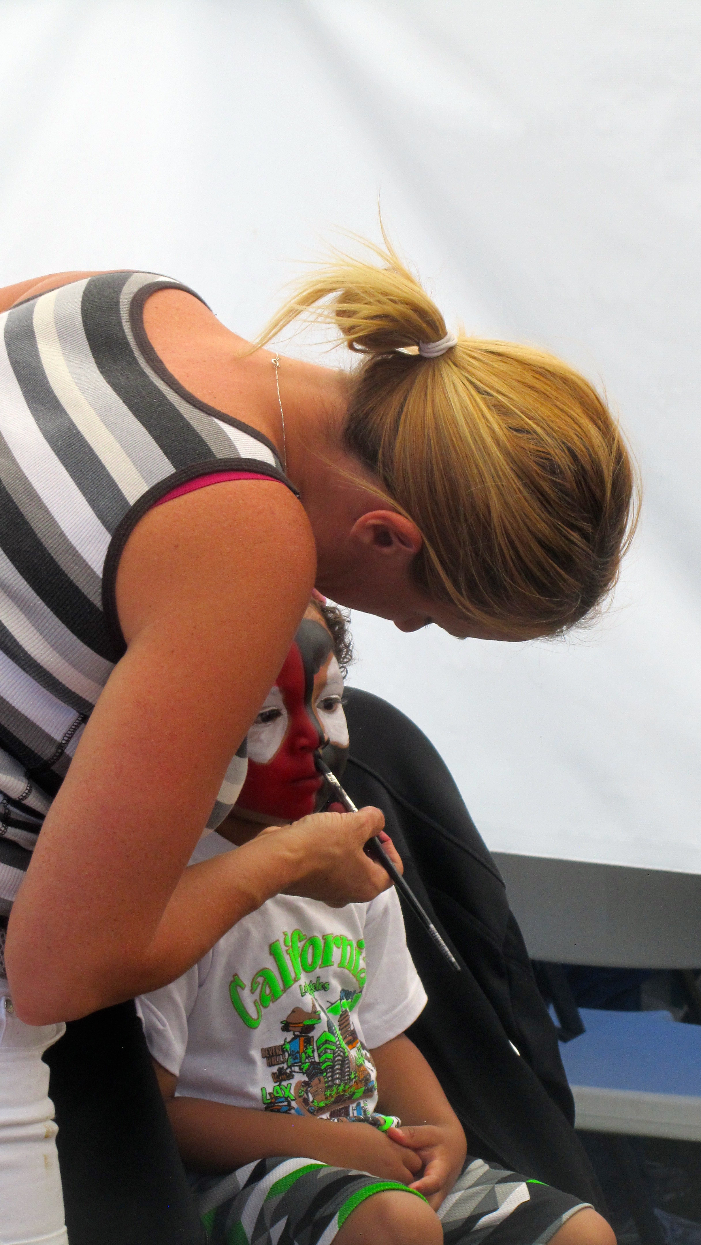 Hula hoops and balls. Too bad I, Zeb the Duck, am not human. There were many other activities for children. The large balls they get inside and try to walk. Also face painting. Lots of vendors selling great stuff. And the food. These are our two favorite festival food booths.