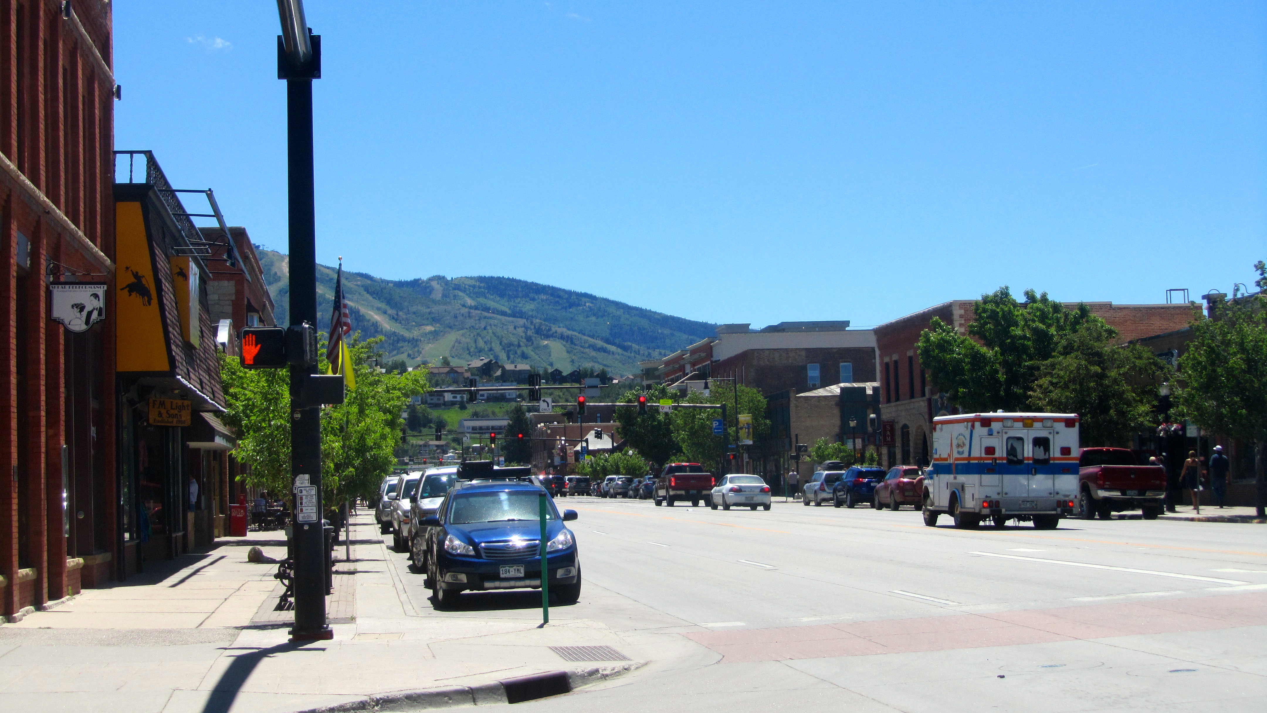 I, Zeb the Duck, really like the main street of Steamboat Springs.