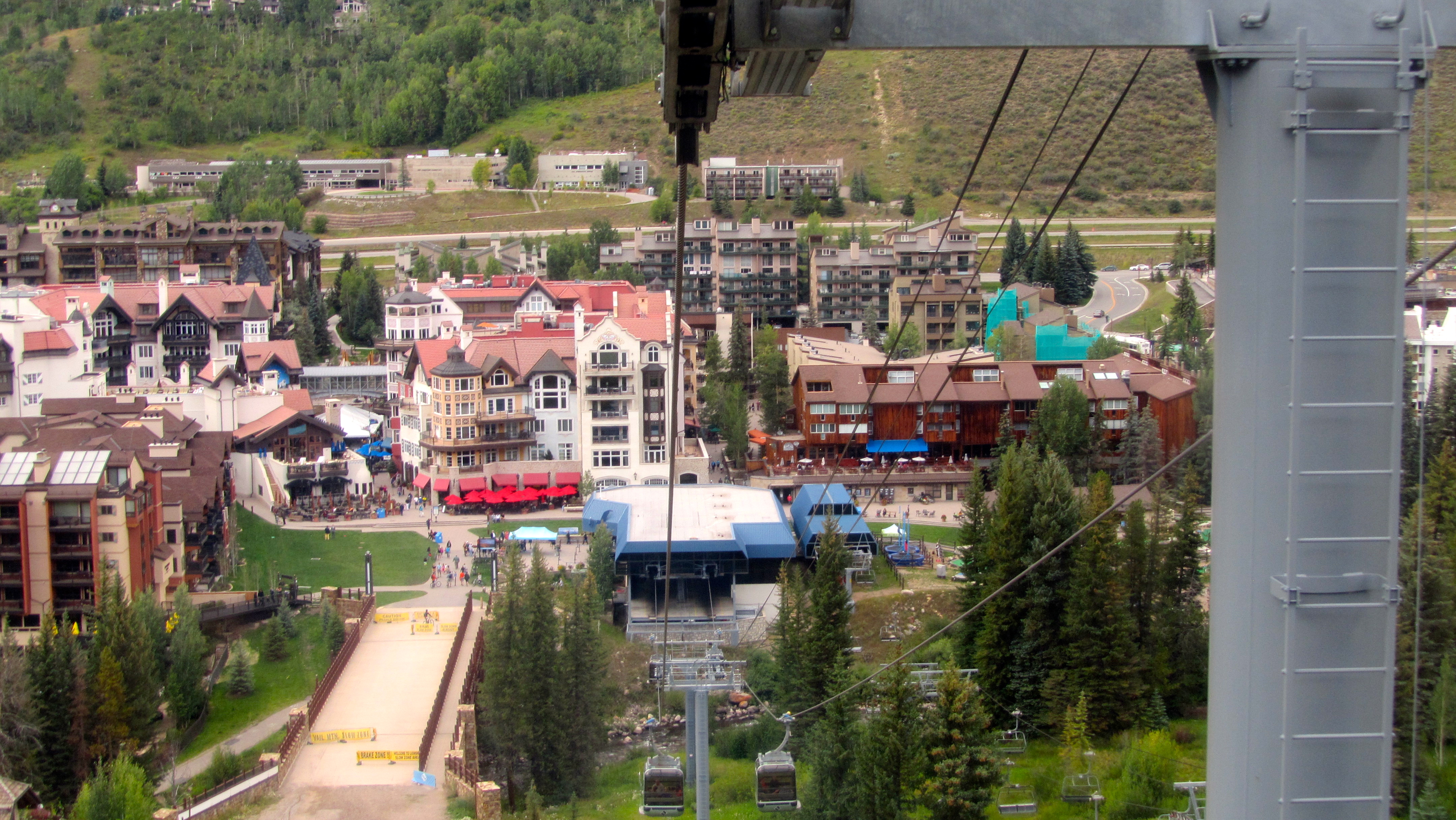 That duck! We walked by the gondola, on the bike paths so Steve could play too. Coming back down the mountain, this sign made us laugh.