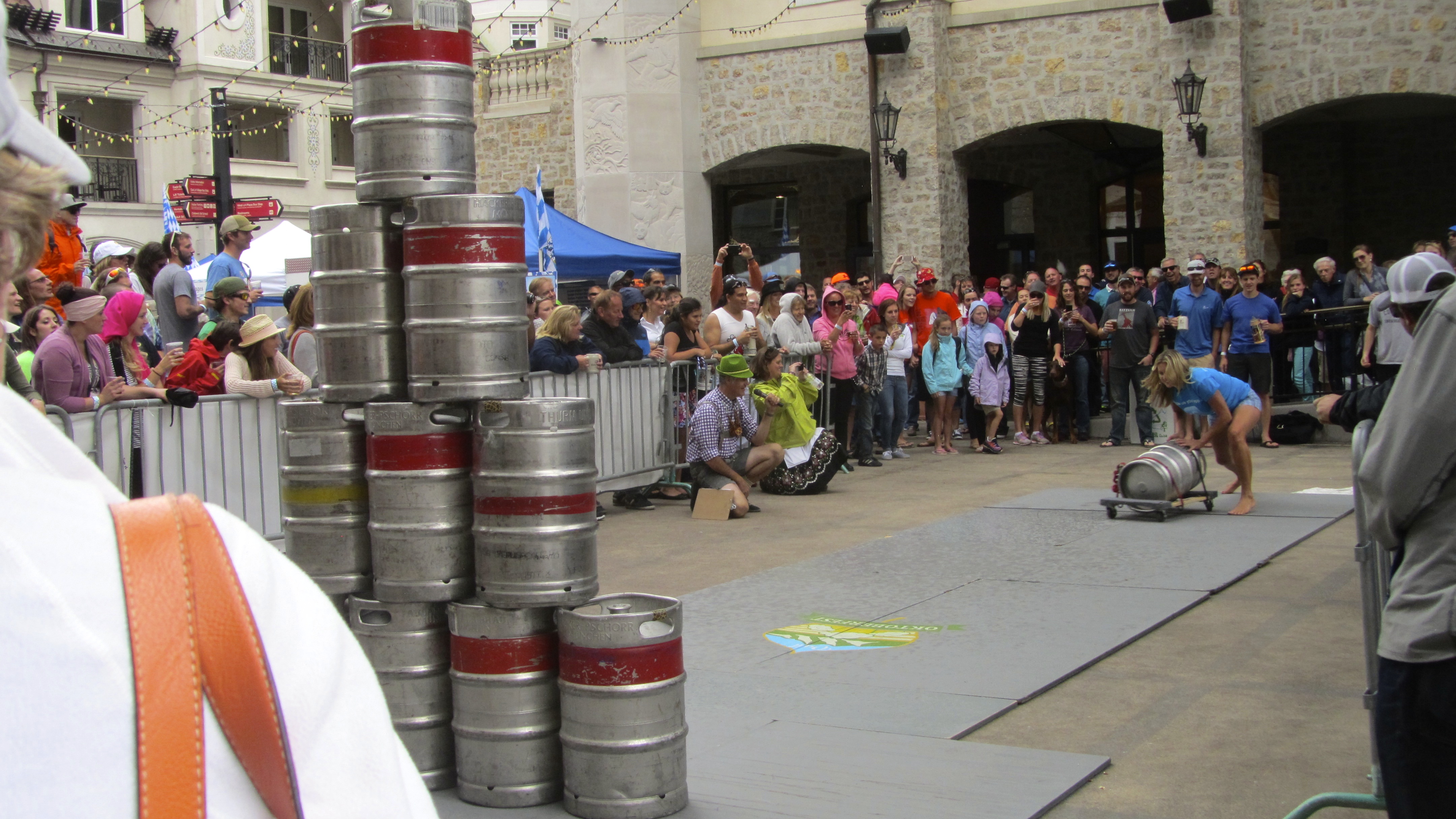 Soapy’s dog Steve went too. It was wonderful. But, why is Oktoberfest in September? Moms said it’s a German thing??? Many places are having Oktoberfest now, but we decided to visit Vail. In addition to the beer tents and live music, Vail had extra events. Let’s begin with the adult keg-bowling contest. Another first for the ducks. Contestants must be at least 21 years old.