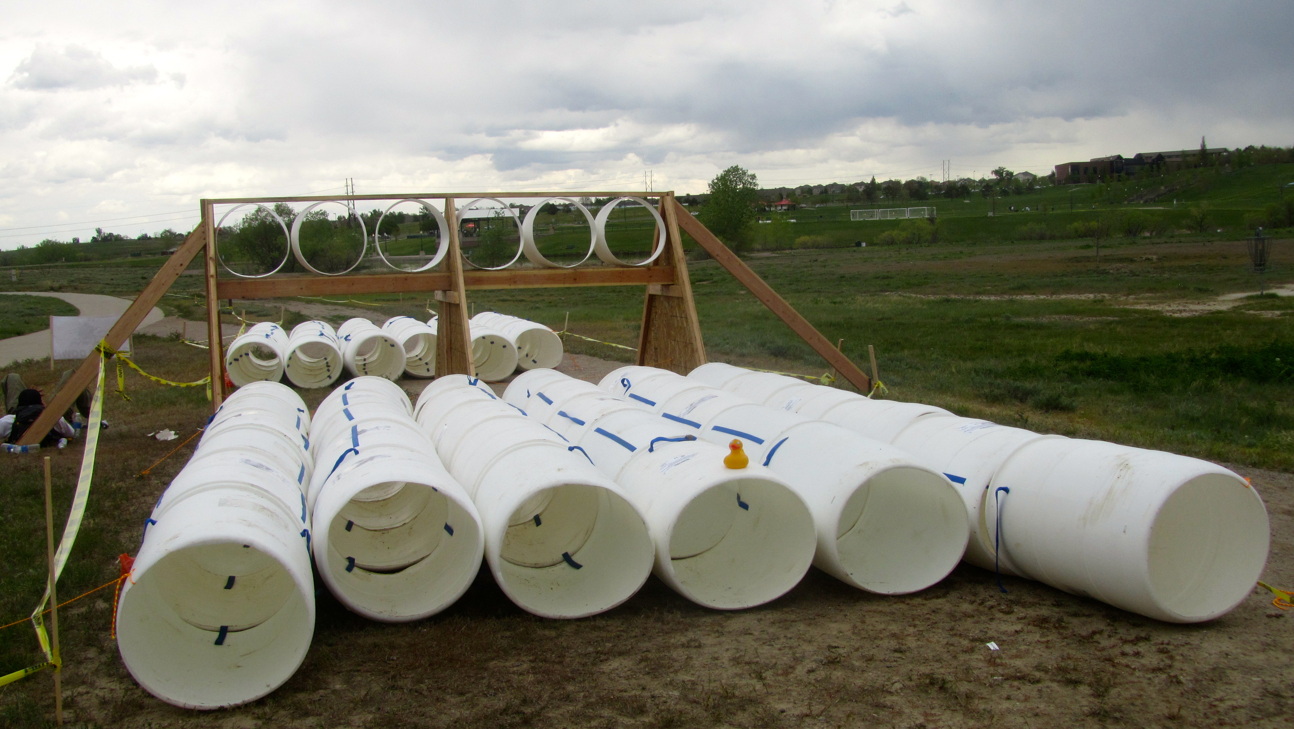 Adult teams ran the 5 km race. Teams must use a fireman carry to arrive at a second set of pipes.