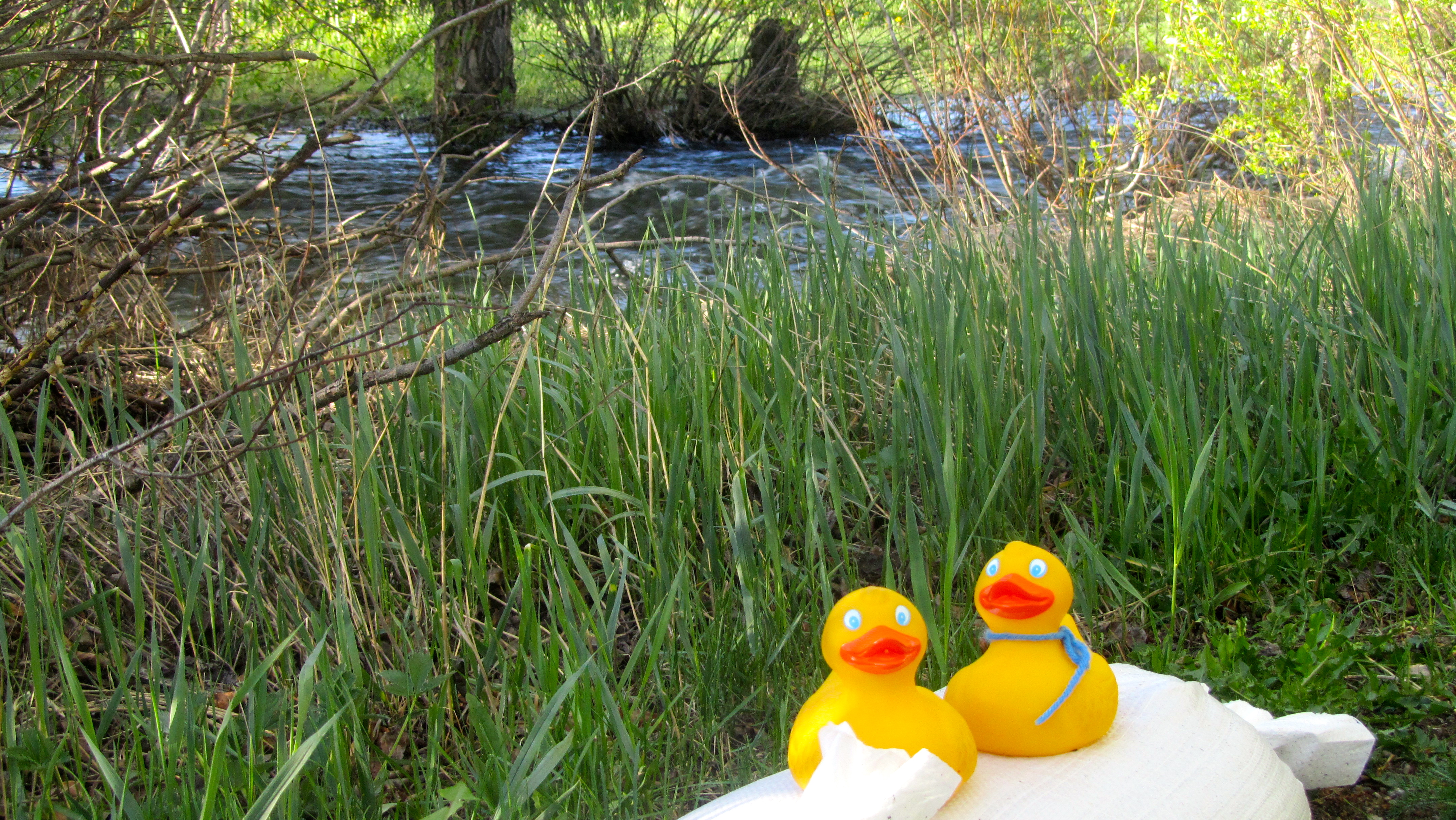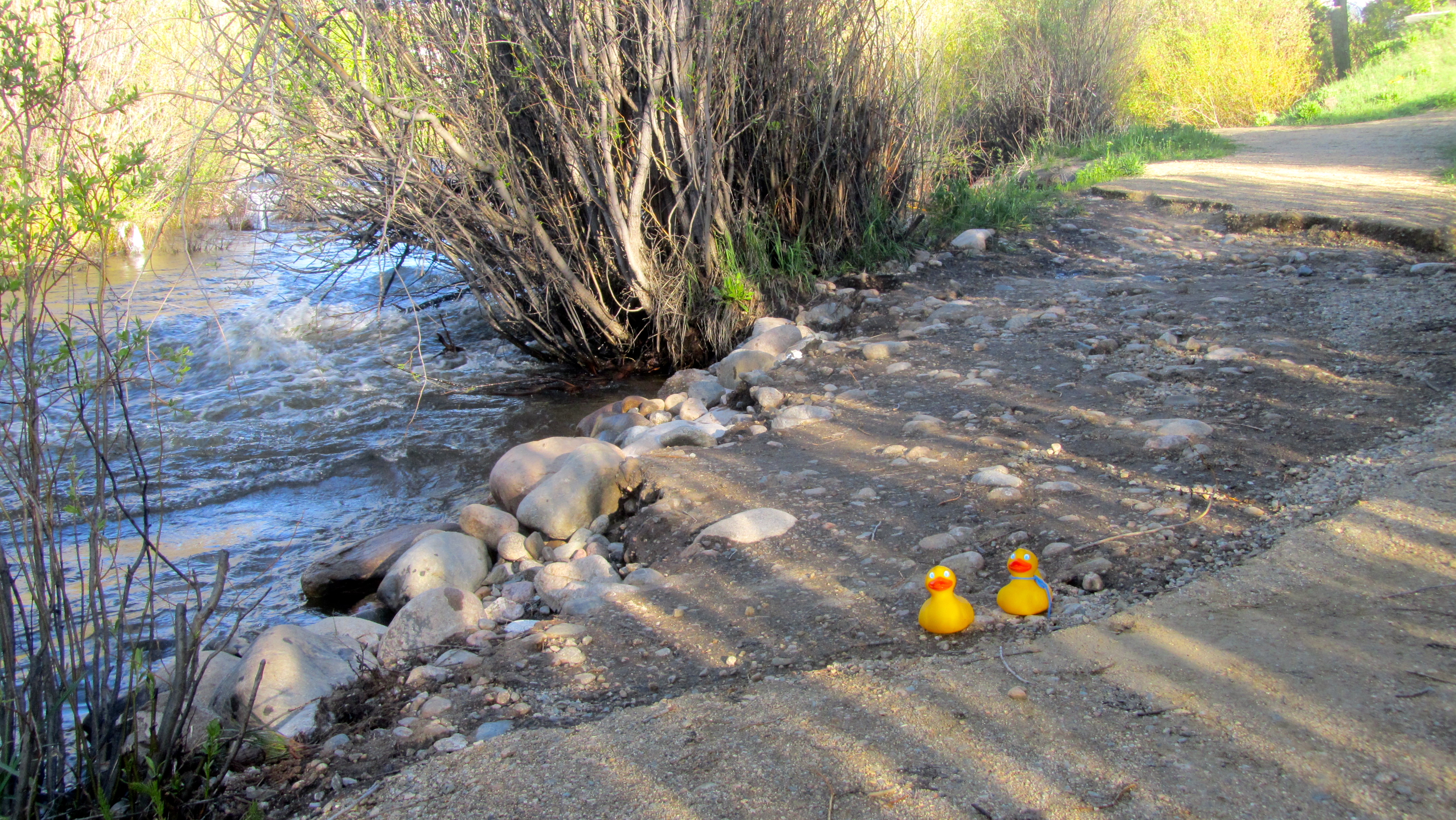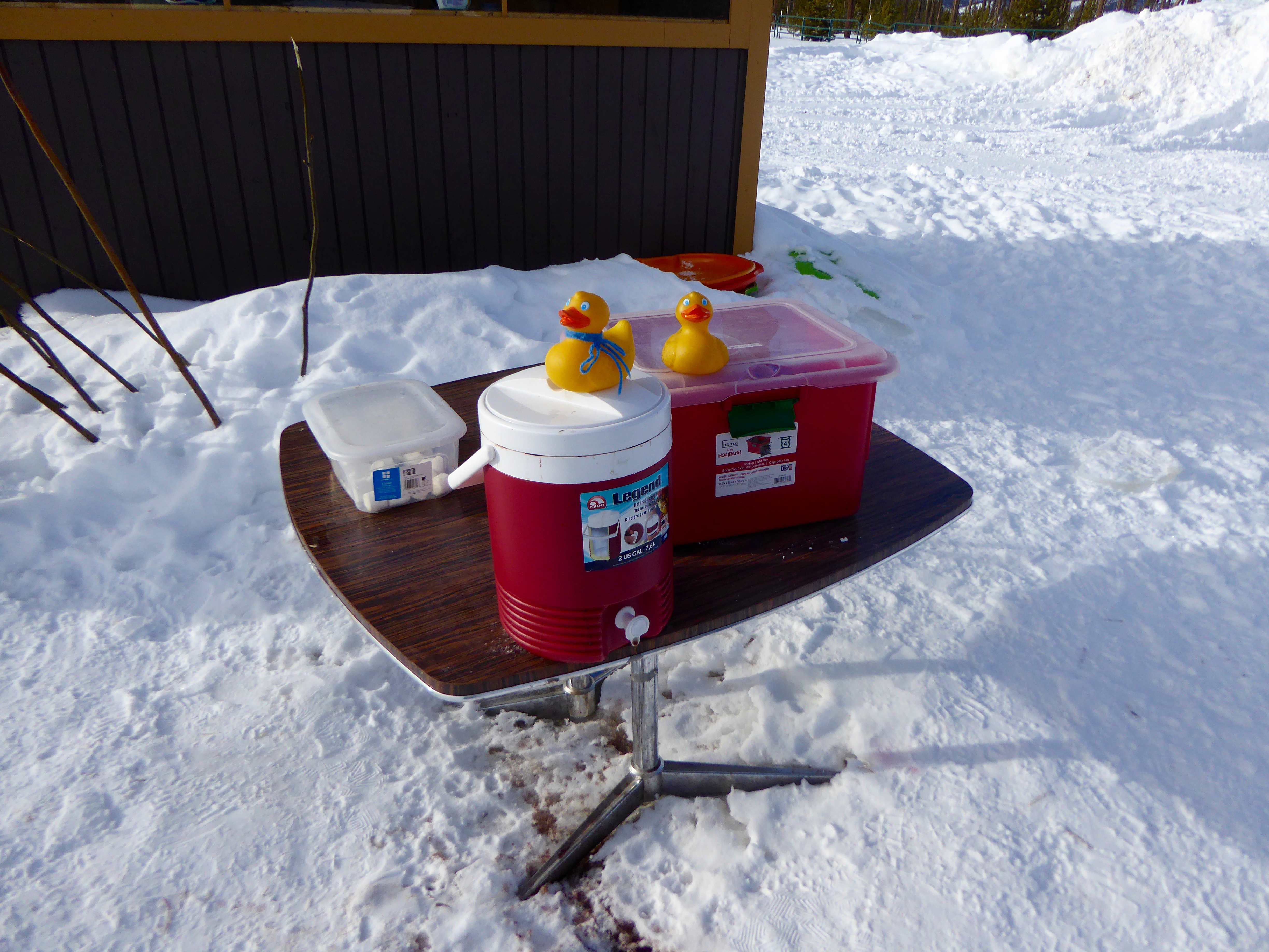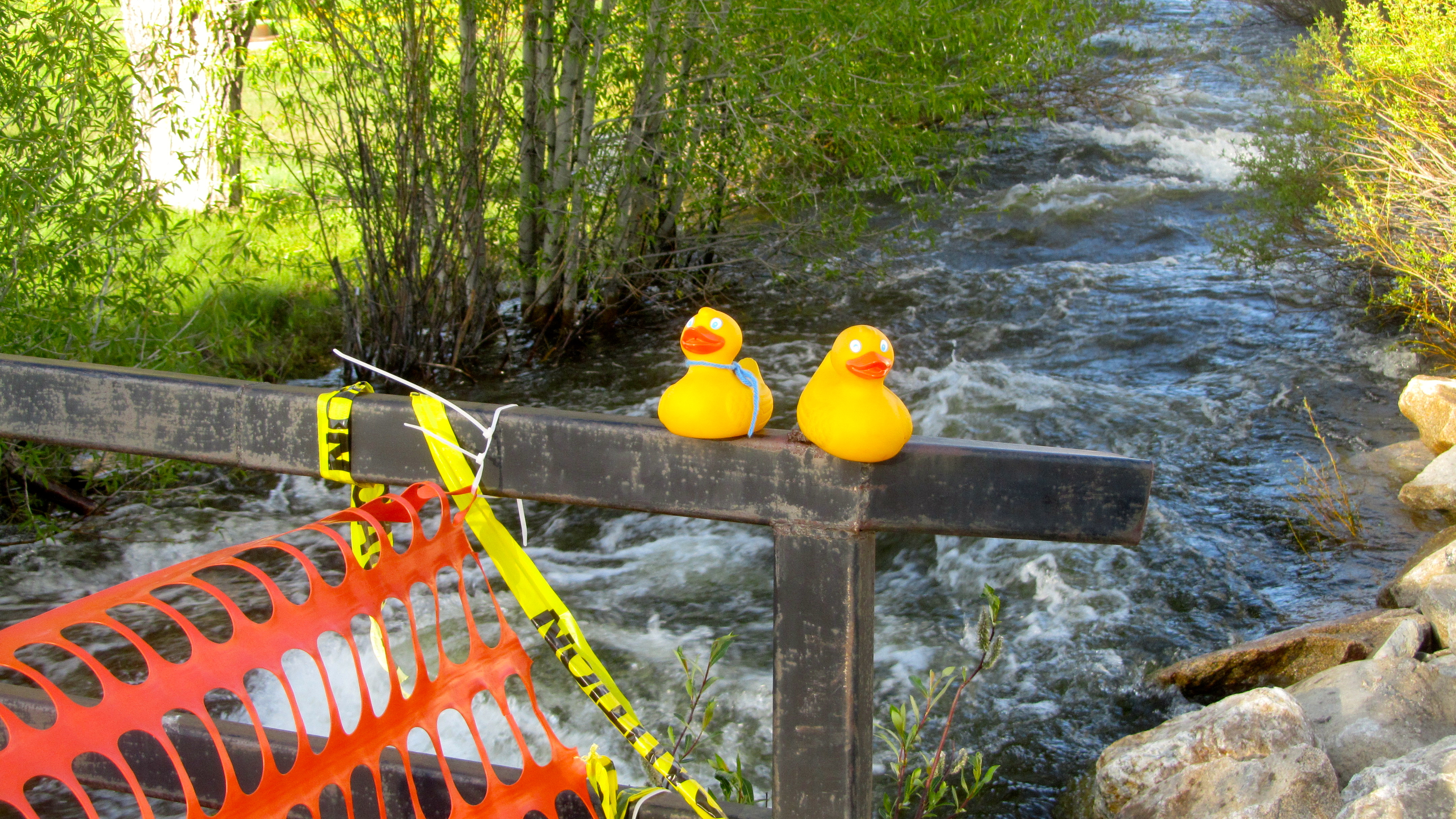 A cold, snowy day in Denver. We ducks are enjoying this weather and we like the almost frozen lake behind us.