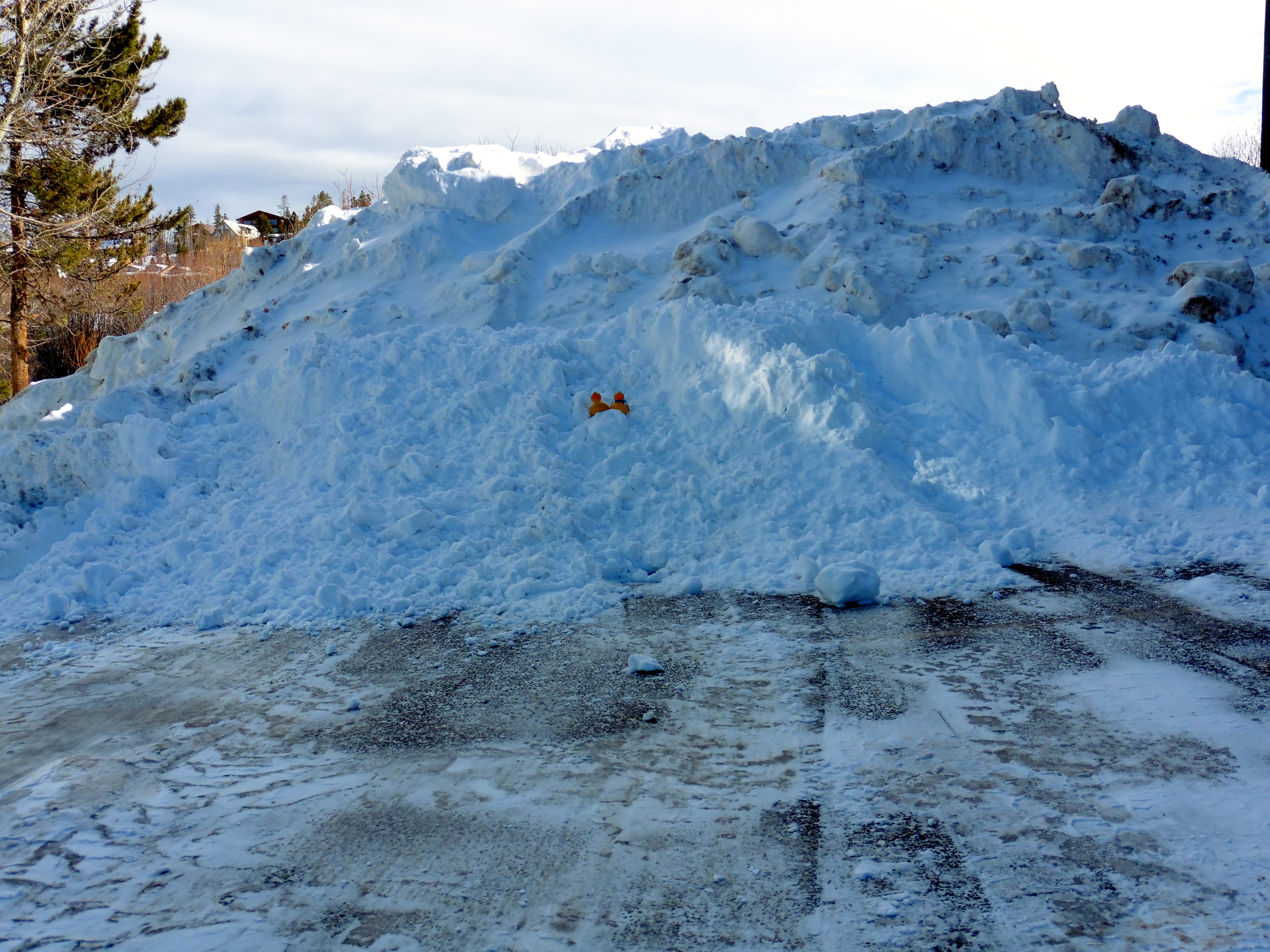 Here maintenance people shovel the roof of our condo. A few feet of snow and ice is too dangerous and heavy for many roofs. And the parking area also needs to be shoveled. Melting caused by our intense mountain sun lets melting occur daily, but then freezing takes over every night.