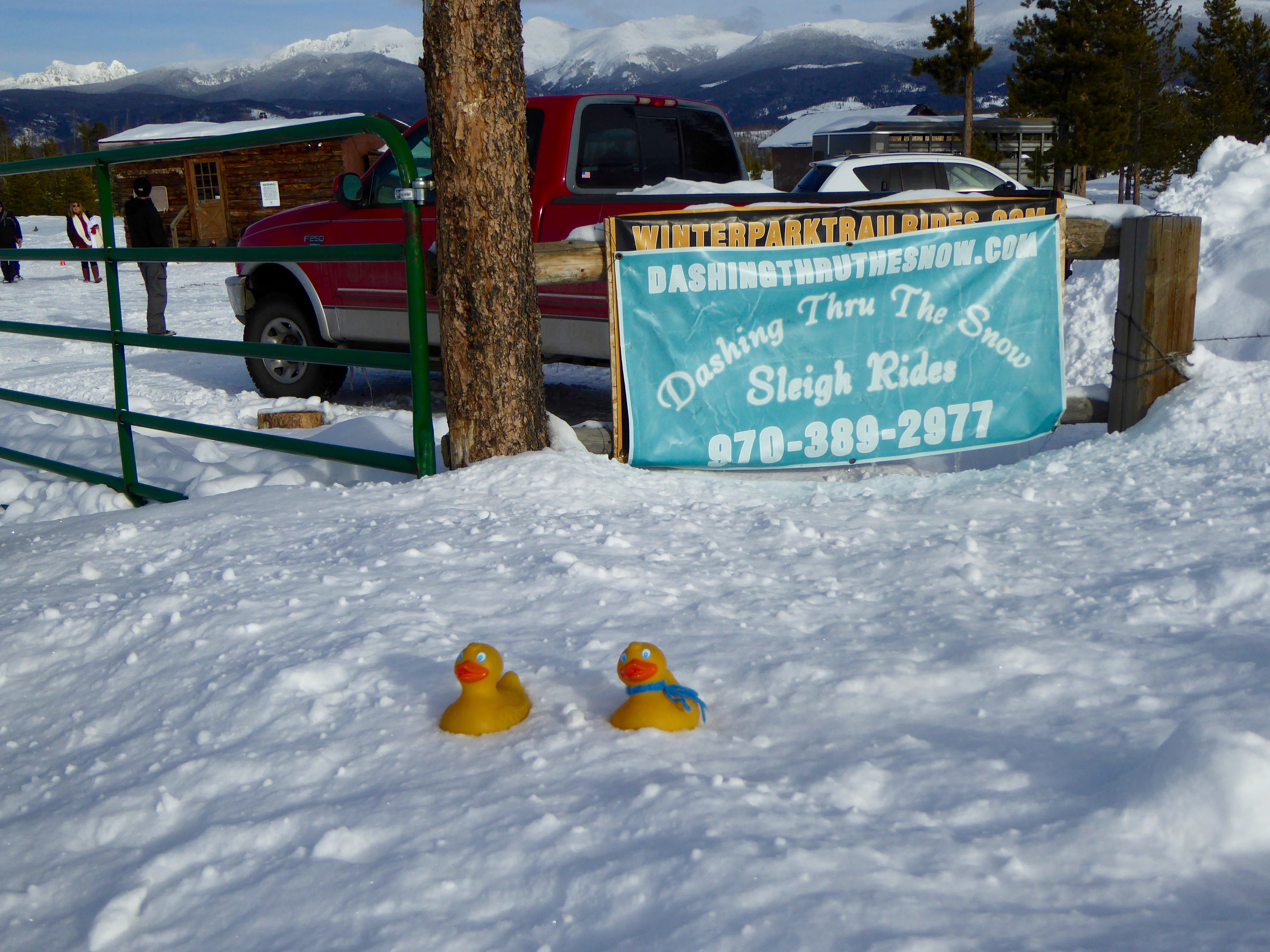 Snowmobiles are available in most places. These are near the tubing hill. But let’s see Colorado’s main winter sport.