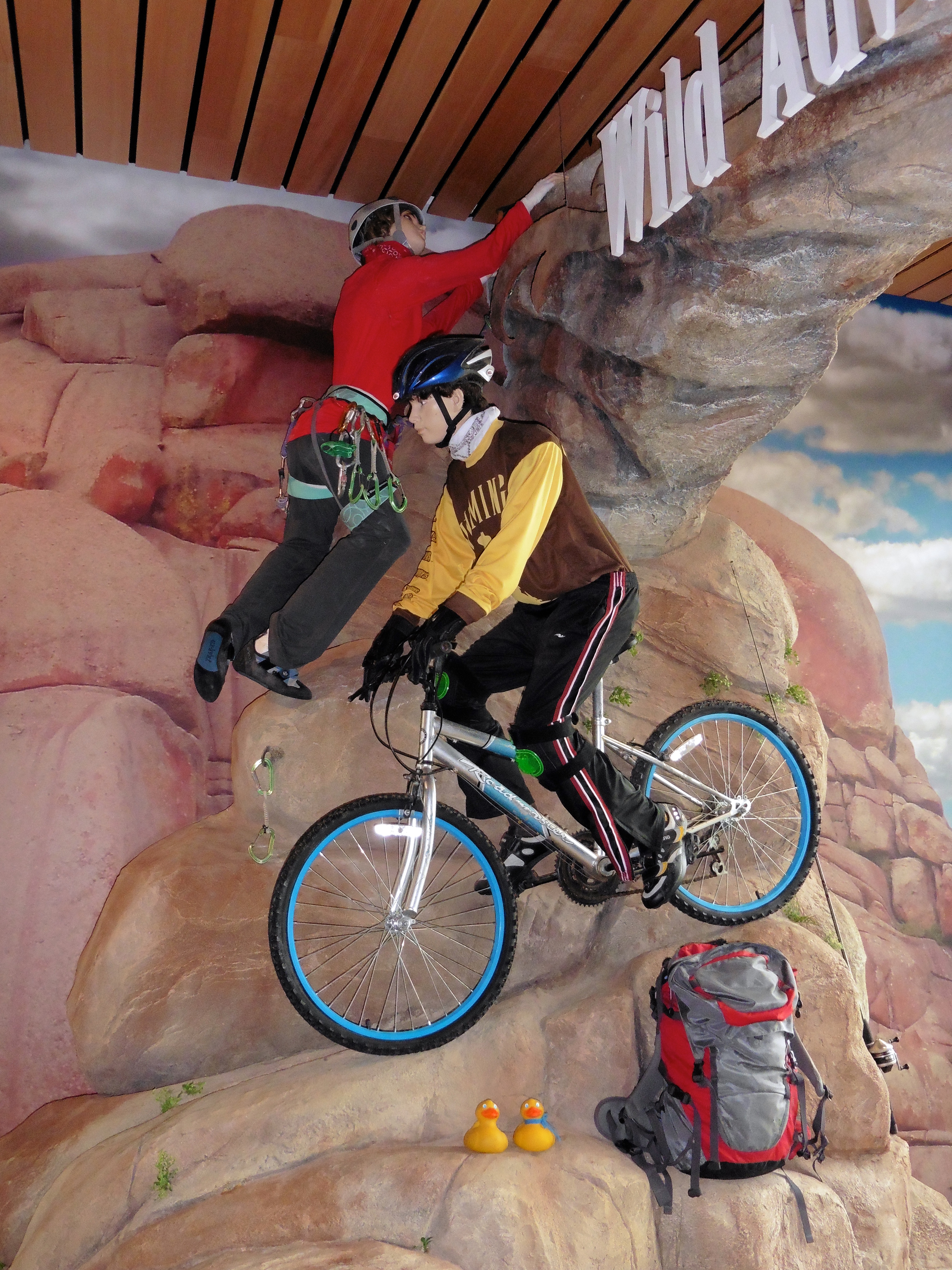 carved figures on the porch and lots of mounted animals inside. WOW!! This is real old western place. I sat on each figure